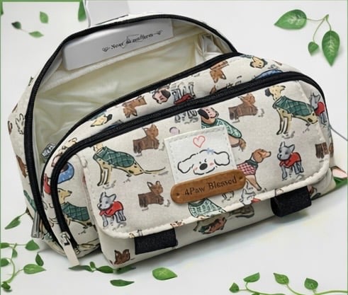 Diseñado con un encantador estampado de perritos y un interior funcional, es ideal para guardar:
