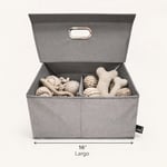 Cuenta con tapa con cierre magnético, divisor interno removible y asas resistentes, lo que permite guardar juguetes y accesorios de forma practica y segura. Su diseño plegable facilita al momento de guardar de ser necesario.