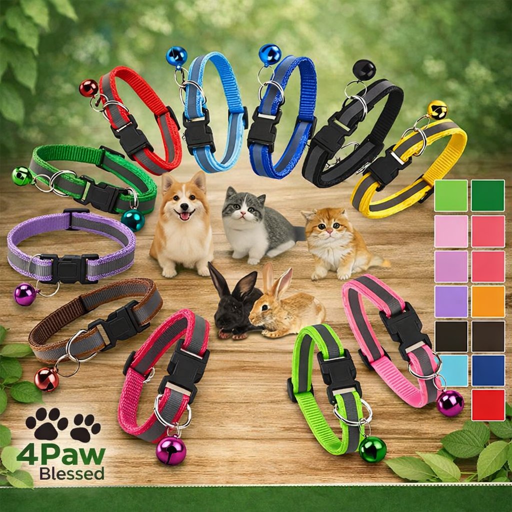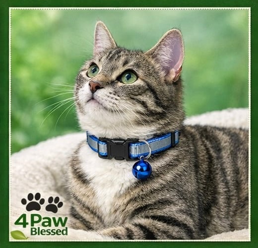 Collar Reflectivo para Gatos con Campanita – Ajustable One Size | 4Paw Blessed