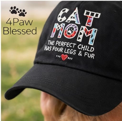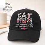 Gorra “Cat Mom — The Perfect Child Has Four Legs & Fur” (Negra, Ajustable)