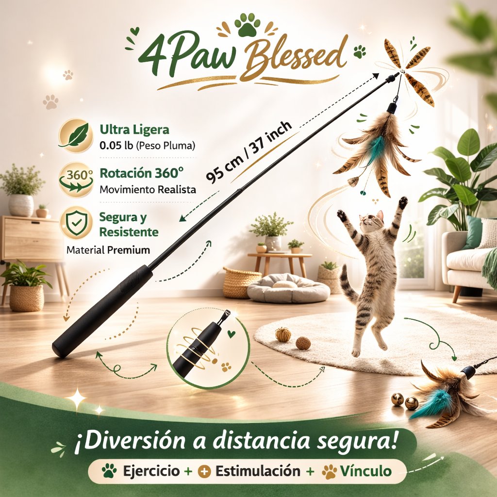 Juguete Interactivo para Gatos con Vara Extendida – 4Paw Blessed