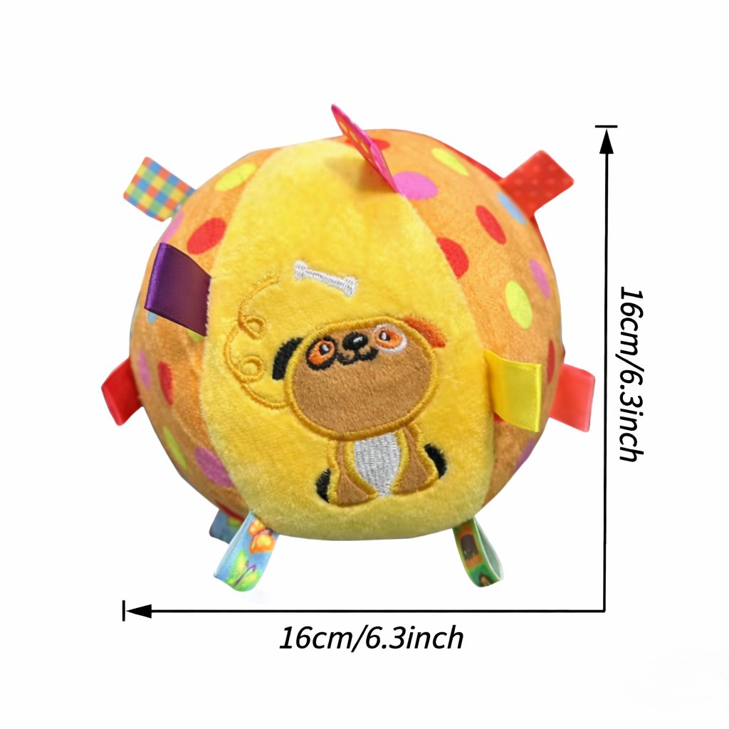 Diseñada con colores llamativos, texturas suaves y cintas de tela, esta pelota ayuda a mantener a tu perro entretenido mientras estimula sus sentidos y curiosidad natural.